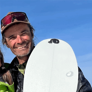 - Historique : snowboarder « presque » de la première heure, (il avait 10 ans en 1983), a passé le diplôme de guide au début des années 2000 pour faire découvrir à d’autres passionnés de liberté et grands espaces, les joies du snowboard en montagne non aseptisée. Chaque hiver il guide en split et propose plusieurs stages dans les Alpes, en étoile et en itinérance, avec des parcours très adaptés au splitboard (et comme il n’est pas sectaire, ça arrive qu’un ou deux skieurs se glissent au milieu de ses joyeux surfeurs). « J’adore rider, mais je kiffe aussi faire progresser mes stagiaires, notamment dans toutes les parties techniques de la montée (conversions, anticipation des trajectoires montantes, couteaux, crampons…), dans la recherche de la bonne neige pour descendre, mais aussi dans tout ce qui est conduite de groupe en mode « safe » et en entrainement « secours », pour que lorsqu’il n’y a plus le guide, mes loustics fassent les bons choix! », nous confie Jean-Pat