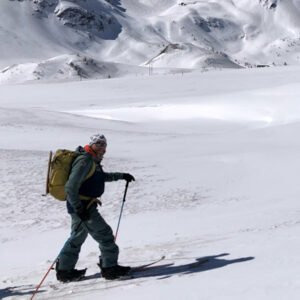 - Historique : Je commence le snowboard à Valfréjus à la fin des années 80, et suivent des années à tracer les stations de Haute-Maurienne avec les potes. Ensuite je repasse par la case « skis » pour passer le diplôme de guide. En 2013, avec mon vieux pote Victor Charon, on lance UP Guides : l’idée était de connecter les gens et les montagnes entre la Scandinavie et les Alpes. En 2014 nos premiers clients splitboarders arrivent, et vu l’offre inexistante de l’époque en Maurienne, tout s’enchaine : l’activité se développe et le split donne un second souffle à mon activité de guide. Chez Upguides on a toujours aimé l’aventure et le partage des connaissances, et on garde cet état d’esprit pour nos activités splitboard, avec des voyages en Scandinavie (Tarfala en Suède, un Festival au Finnmark) et des sessions workshop en Haute-Maurienne.